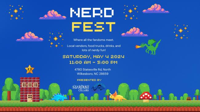 Gear up for Nerd Fest! Calling all cosplayers, trivia titans, and pop culture aficionados! Prepare to warp speed into Nerd Fest, an epic celebration of all things nerdy landing at Stardust Cellars. This one-day extravaganza is your chance to unleash your inner geek, indulge in galactic goodies, and connect with fellow fans from across the galaxy (or, you know, your neighborhood). So mark your calendars, dust off your light sabers, and prepare to celebrate your inner geek at Nerd Fest! This event is for everyone who embraces the joy of fandom, so grab your crew, don your favorite gear, and get ready for a day of interstellar fun at Stardust Cellars.